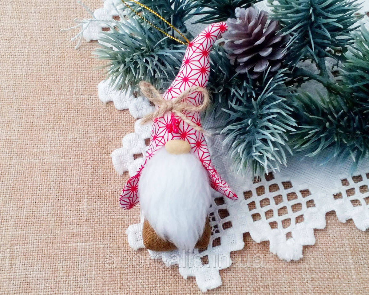 Іграшка на ялинку текстильна 'Лісовий гном' : висота 13,5 см, ширина 5 см